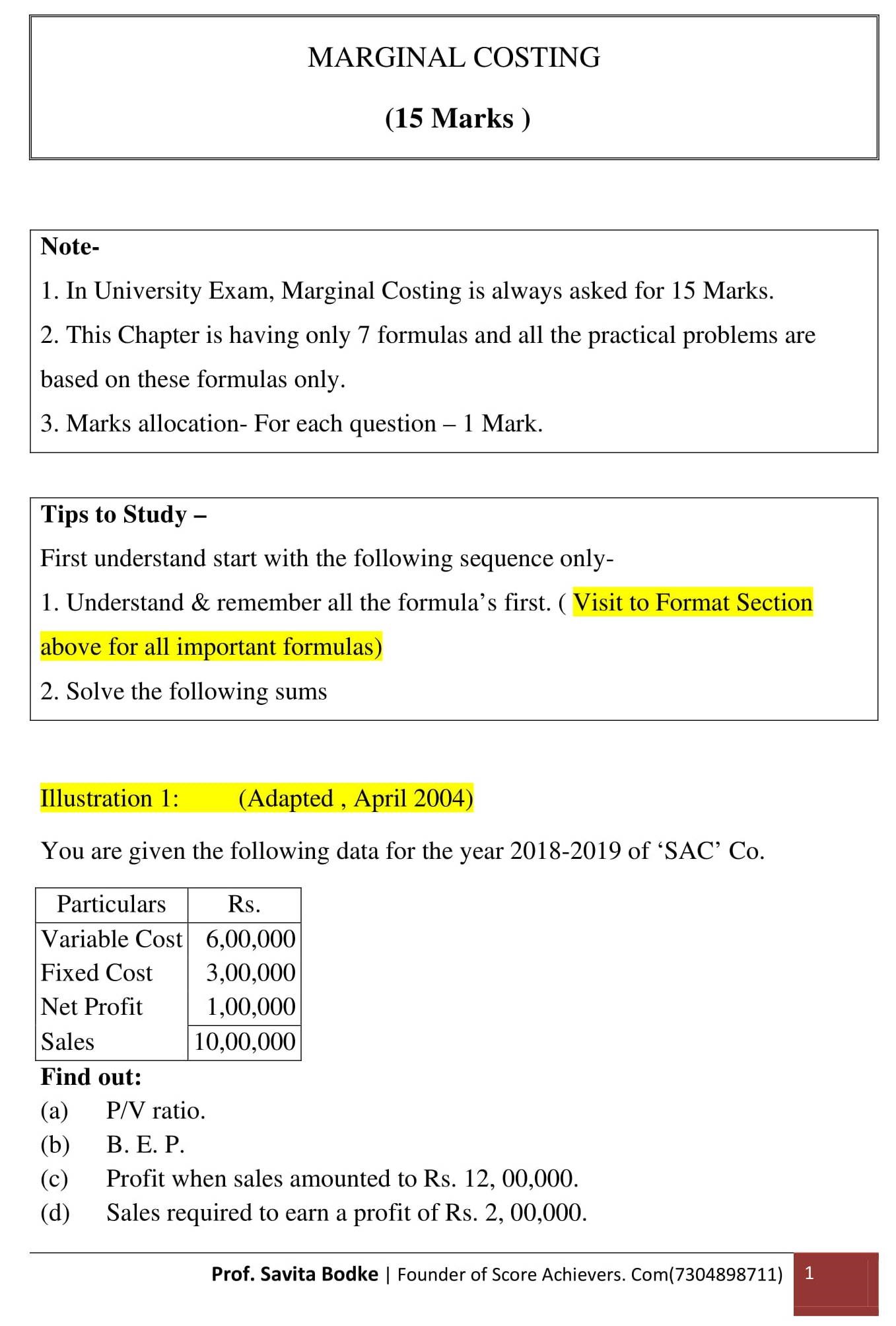 Illustration 1: Adapted (April 2003)From the following data calculate: