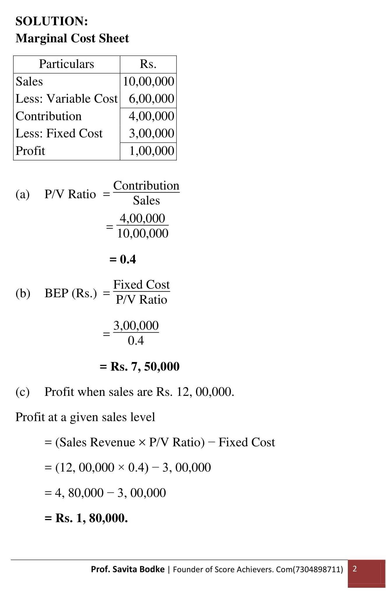 | 2 | Break-Even Point Sales OR BEP (Rs.) |
