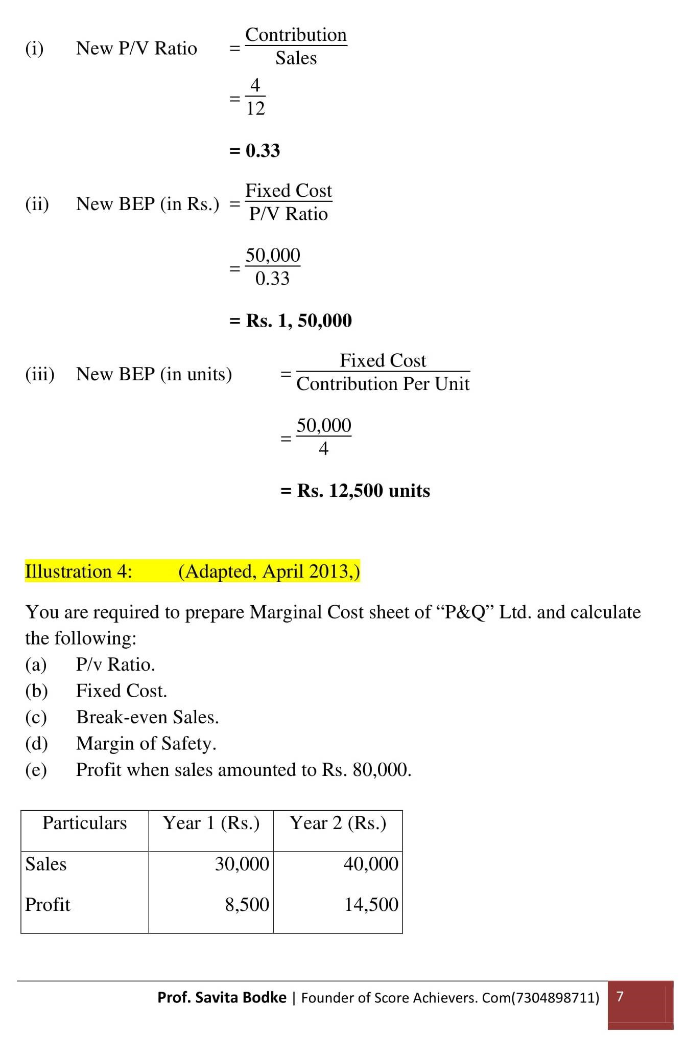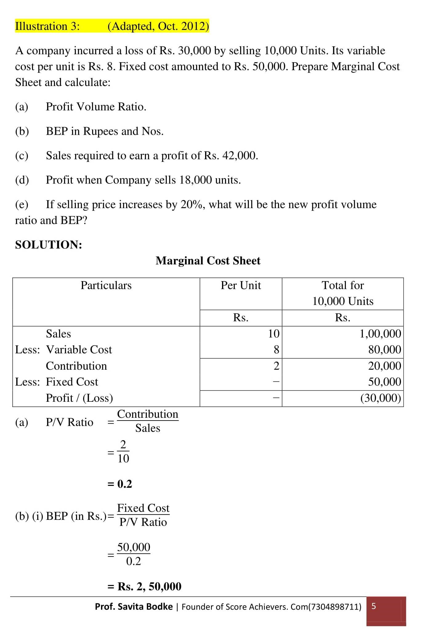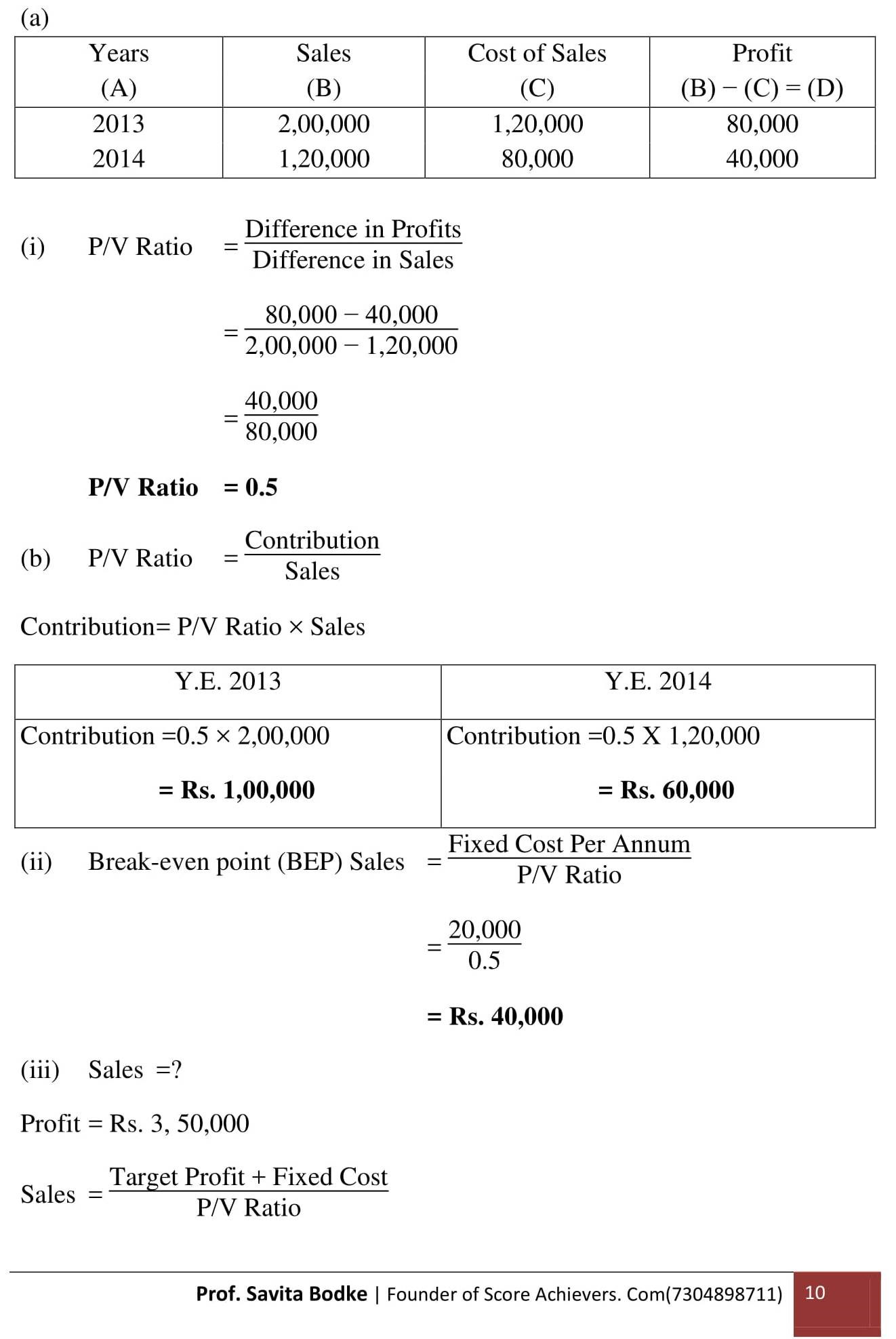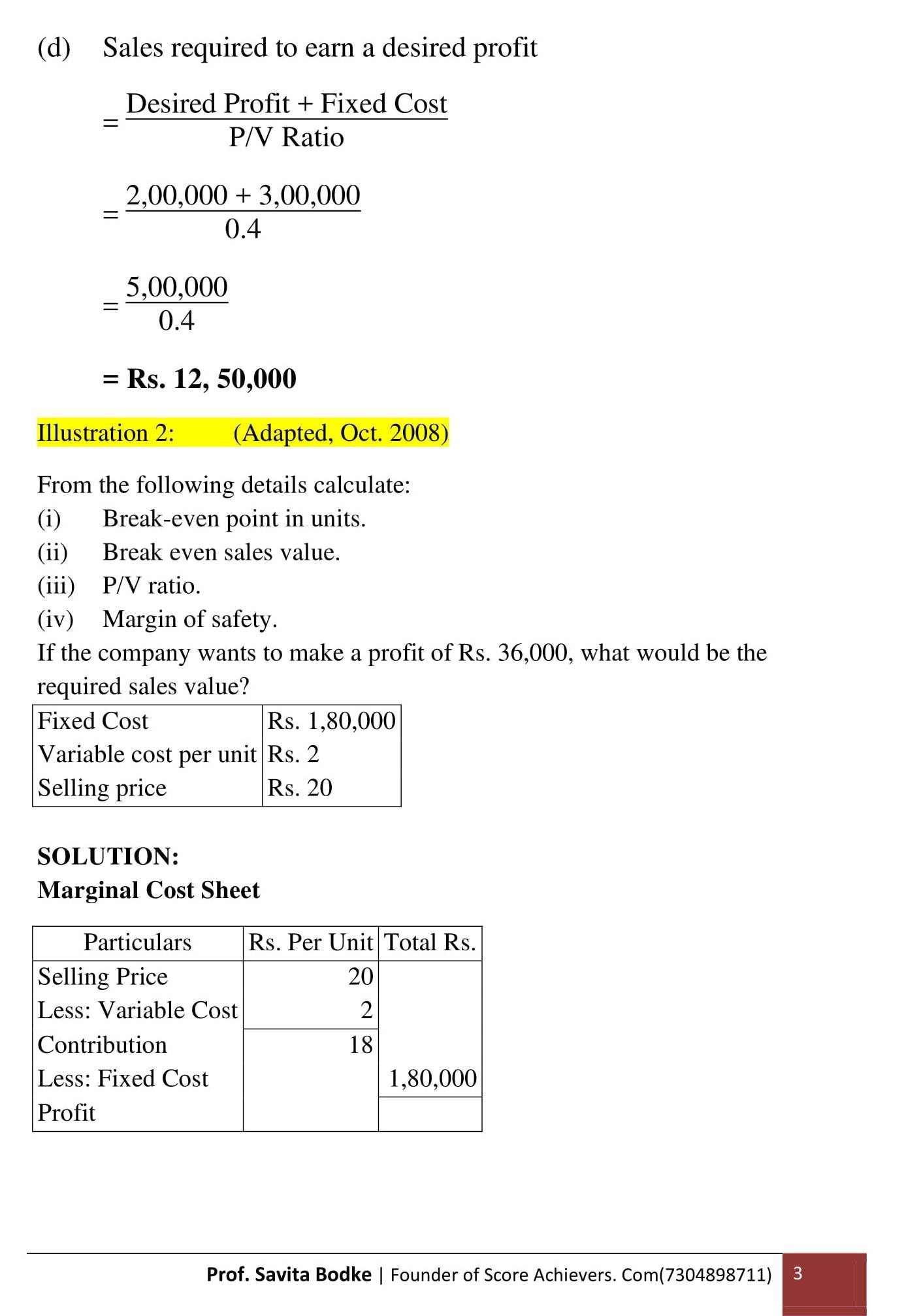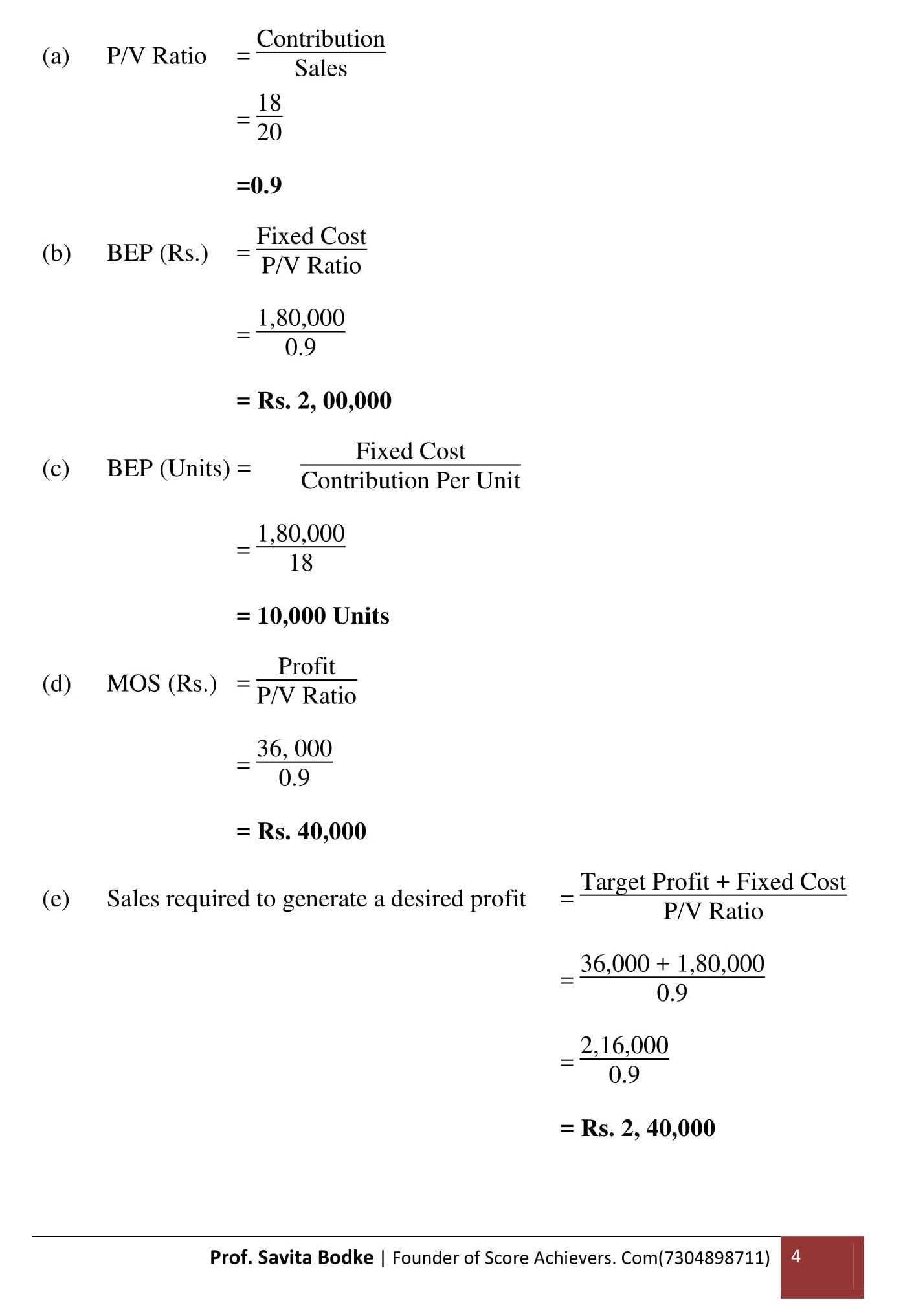 | 3 | Break-Even Point Sales OR BEP (Rs.) |