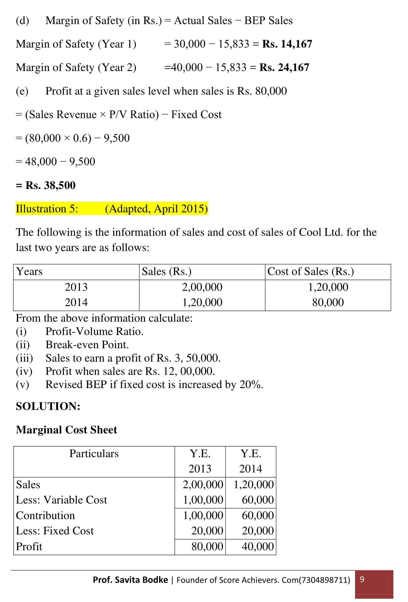 | 5 | Margin of Safety (MOS) Sales OR MOS (Rs.) |