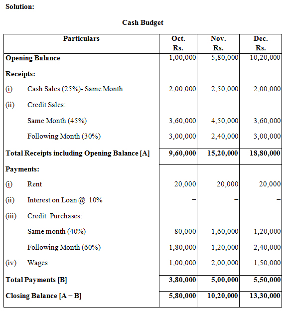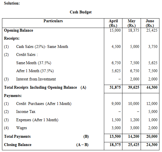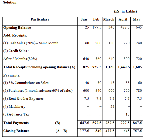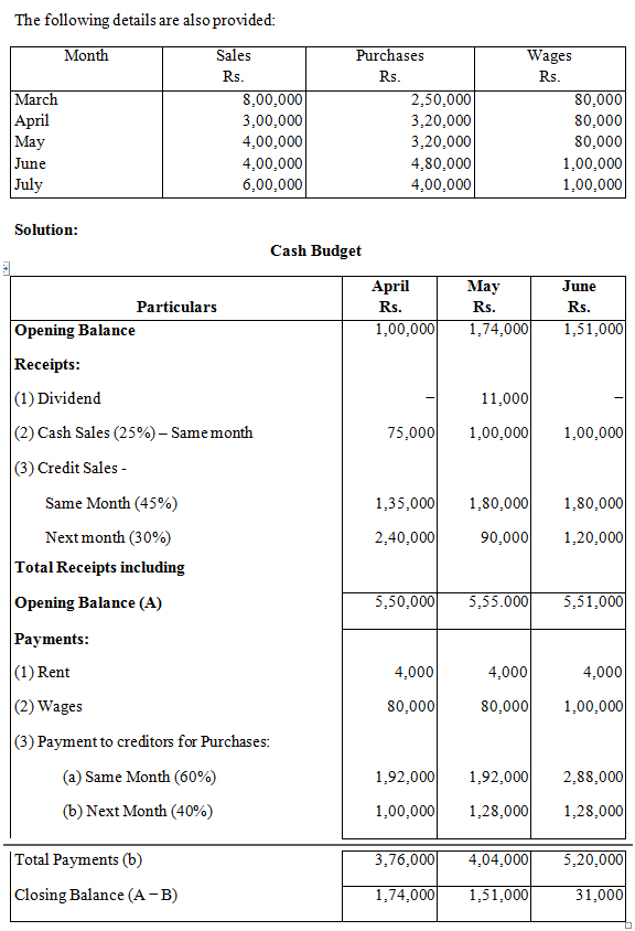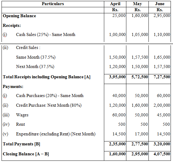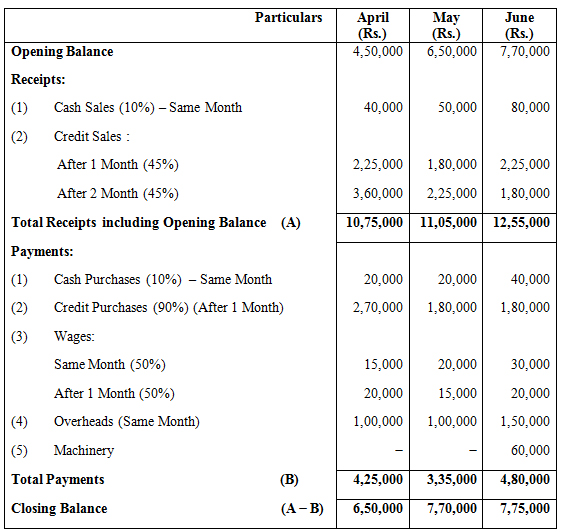 - (h) Opening Cash Balance on 1st January Rs. 25,00,000.