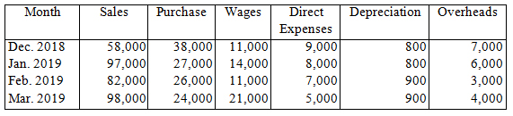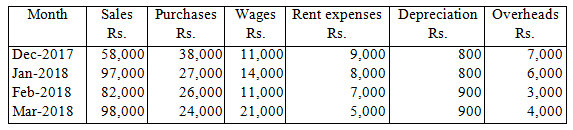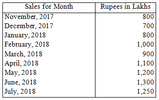 Mr. Akash has given the sales forecast for January to July, 2018 and Actual Sales for November and December, 2017 as under with the particulars given.
