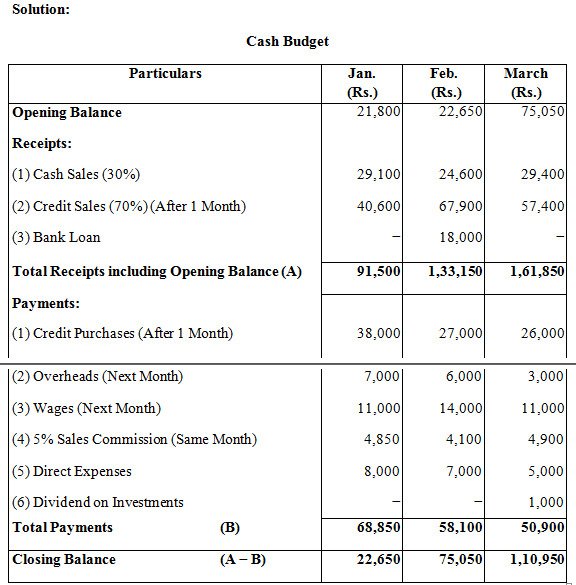 Prepare a Cash Budget for January to March 2019 from the following information of ABCD Ltd.: