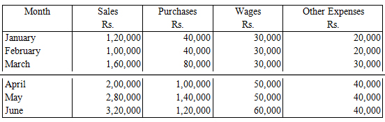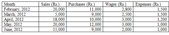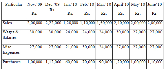 Prepare Cash Budget from January 2010 to June 2010 from the following information of Gama Ltd.: