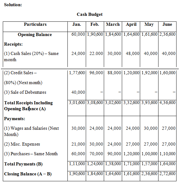 - (d) Cash balance at the end of December-2009 is Rs. 60,000.