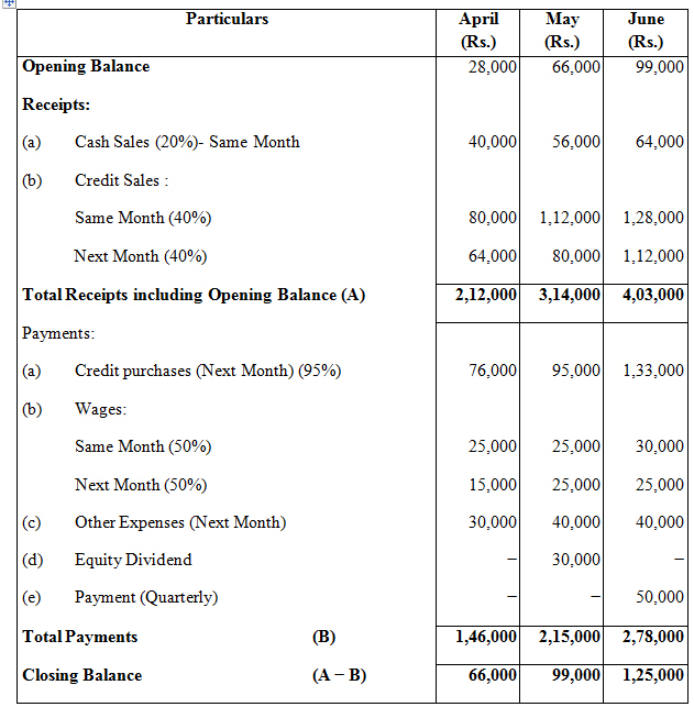 - (b) 20% sales are on cash and the balance on credit are collected in the month following the sales.