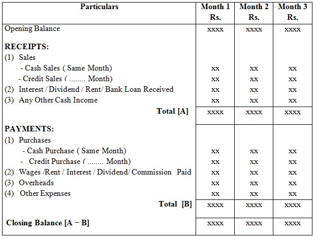 2. Closing Balance of each month will be the Opening Balance for the next month.
