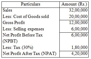 | Net Profit Before Tax Less: Income Tax @ 30% ( 41,000 X 30% = Rs. 12,300) Net Profit After Tax |