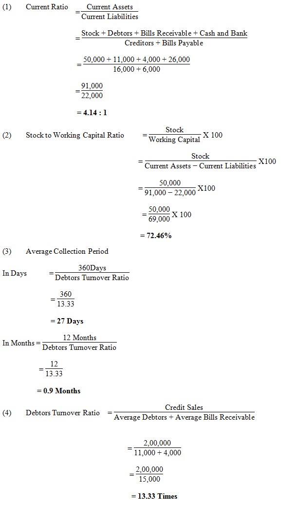 (1) Current Ratio, (2) Stock to Working Capital Ratio, (3) Average Collection Period, (4) Debtors Turnover Ratio.